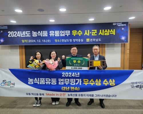 ¼øÃµ½Ã, 2024³â ³ó½ÄǰÀ¯Åë ¾÷¹«Æò°¡ 2³â ¿¬¼Ó ¿ì¼ö»ó ¼ö»ó