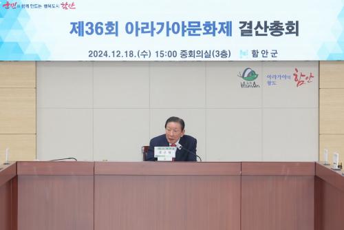 [½Åµ¿¾Æ¹æ¼Û °æ³²ÇÔ¾È=À̽ŵ¿±âÀÚ] ÇԾȱºÀº 18ÀÏ ±ºÃ» º°°ü 3Ãþ ÁßȸÀǽǿ¡¼­ ¡®Á¦36ȸ ¾Æ¶ó°¡¾ß¹®È­Á¦ °á»êÃÑȸ¡¯¸¦ °³ÃÖÇß´Ù. À̳¯ À§¿øÀåÀÎ Á¶±ÙÁ¦ ÇԾȱº¼ö¸¦ ºñ·ÔÇÏ¿© ¾Æ¶ó¹®È­Á¦À§¿øÈ¸ À§¿ø, °ü°è °ø¹«¿ø µî 30¿© ¸íÀÌ Âü¼®Çß´Ù. °á»êÃÑȸ¿¡¼­´Â Á¦36ȸ ¾Æ¶ó¡¦
