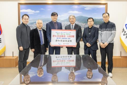 [½Åµ¿¾Æ¹æ¼Û ÀÎõ= À±¹Î½Ä±âÀÚ] ÀÎõ±¤¿ª½Ã °è¾ç±¸(±¸Ã»Àå À±È¯)´Â Áö³­ 19ÀÏ ¿ëÁ¾µ¿ ¼ÒÀç ¿Â´©¸®°¨¸®±³È¸°¡ Ãë¾à°èÃþ Áö¿øÀ» À§ÇÑ ¿Â´©¸®»óǰ±Ç 1,000¸Å(ȯ°¡¾× 1,000¸¸ ¿ø »ó´ç)¸¦ ±âŹÇß´Ù°í ¹àÇû´Ù. ¿Â´©¸®°¨¸®±³È¸´Â ¸Å³â »ç¶ûÀÇ ½Ò 1,004Æ÷, ¶ó¸é µîÀ» ±âŹ¡¦