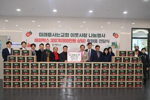 [½Åµ¿¾Æ¹æ¼Û Çϳ²½Ã=À̽ŵ¿±âÀÚ] Áö³­ 18ÀÏ ¹Ì»ç3µ¿ ¼ÒÀç ¹Ì·¡¸¦»ç´Â±³È¸´Â ¿¬¸»À» ¸Â¾Æ Çϳ²½Ã¿¡ ÇØÇǹڽº 300°³¸¦ ±âºÎÇÏ¸ç ±âŹ½ÄÀ» °¡Á³´Ù. ÇØÇǹڽº´Â ´Ù¾çÇÑ »ýÇÊǰÀÌ ´ã±ä »óÀÚ·Î, Áö¿ª»çȸ ¼Ò¿ÜµÈ ÀÌ¿ôµé¿¡°Ô Çູ°ú À§·Î¸¦ ÀüÇϰíÀÚ ÁغñµÈ ±âŹǰÀÌ´Ù. À̳¯¡¦