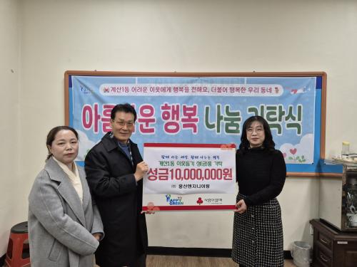[½Åµ¿¾Æ¹æ¼Û ÀÎõ= À±¹Î½Ä±âÀÚ] ÀÎõ½Ã °è¾ç±¸ °è»ê1µ¿(µ¿Àå ±èÈñ¼ö)Àº Áö³­ 19ÀÏ ¢ß¿õ»ê¿£Áö´Ï¾î¸µ°¡ ¿¬¸»À» ¸Â¾Æ ÀÌ¿ô µ½±â ¼º±Ý 1,000¸¸ ¿øÀ» ±âŹÇß´Ù°í ¹àÇû´Ù. ¢ß¿õ»ê¿£Áö´Ï¾î¸µ ¿À¼¼º¹ ´ëÇ¥´Â ¡°¿Ü·Ó°í Èûµç ½Ã°£À» º¸³»°í ÀÖ´Â ÀÌ¿ôµé¿¡°Ô Áö¿ª»çȸÀÇ µû¶æ¡¦