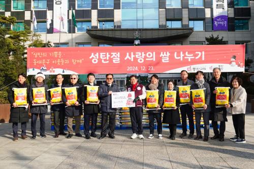 [½Åµ¿¾Æ¹æ¼Û µ¿´ë¹®±¸=À̽ŵ¿±âÀÚ] µ¿´ë¹®±¸´Â À̹®µ¿ ¼ÒÀç µ¿¾È±³È¸(´ãÀÓ¸ñ»ç ±èÇüÁØ)°¡ ¼ºÅºÀýÀ» ¸ÂÀÌÇØ 23ÀÏ ¾î·Á¿î ÀÌ¿ôµéÀ» À§ÇÑ »ç¶ûÀÇ ¹é¹Ì 28,000kg(ȯ°¡¾× 7,560¸¸ ¿ø)À» ±âŹÇß´Ù°í ¹àÇû´Ù. µ¿´ë¹®±¸Ã» ¾Õ ±¤Àå¿¡¼­ ÁøÇàµÈ »ç¶ûÀÇ ¹é¹Ì Àü´Þ½Ä¿¡´Â Ãß¿î ³¯¡¦