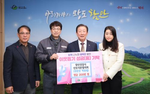 [½Åµ¿¾Æ¹æ¼Û °æ³²ÇÔ¾È=À̽ŵ¿±âÀÚ] ÇԾȰæÂû¼­ ¾Èº¸ÀÚ¹®ÇùÀÇȸ´Â 24ÀÏ ¾î·Á¿î ÀÌ¿ô¿¡°Ô ½á´Þ¶ó¸ç 200¸¸ ¿øÀ» ÇԾȱº¿¡ ±âŹÇß´Ù. À̳¯ ±âŹ½Ä¿¡´Â Á¶±ÙÁ¦ ÇԾȱº¼ö¿Í ÇԾȰæÂû¼­ ¾Èº¸ÀÚ¹®ÇùÀÇȸ À§¿øÀå ¹ÚÁ¾ÇÊ, »ç¹«±¹Àå ½ÉâÁø ¿Ü °ü°èÀÚµéÀÌ Âü¼®ÇßÀ¸¸ç, ±âŹµÈ ¼º¡¦