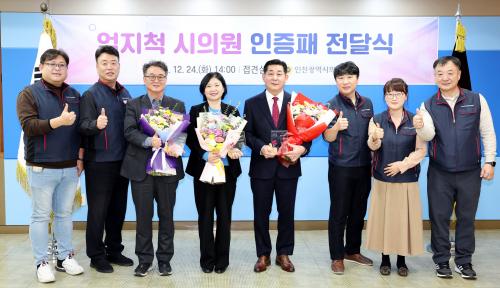 [½Åµ¿¾Æ¹æ¼Û ÀÎõ= À±¹Î½Ä±âÀÚ] ÀÎõ½Ã±¤¿ª½ÃÀÇȸ(ÀÇÀå Á¤ÇرÇ)´Â 24ÀÏ Á¢°ß½Ç¿¡¼­ ÀÇȸ °£ºÎ°ø¹«¿ø°ú »óÀÓÀ§ Á÷¿ø, ÀÎõ°ø¹«¿ø³ëµ¿Á¶ÇÕ °ü°èÀÚ µîÀÌ Âü¼®ÇÑ °¡¿îµ¥ ¡®2024 ¾öÁöô ½ÃÀÇ¿ø ÀÎÁõÆÐ ¼ö¿©½Ä¡¯À» °¡Á³´Ù. À̹ø ¾öÁöô ½ÃÀÇ¿øÀº ¿Ã ÇÑÇØ ÁýÇàºÎ °ø¹«¿øµé°ú¡¦