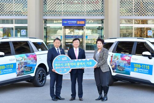 [½Åµ¿¾Æ¹æ¼ÛÀü³²¿©¼ö=±è±â³² ±âÀÚ] ¿©¼ö½Ã(½ÃÀå Á¤±â¸í)´Â Áö³­ 24ÀÏ ½Ãû Çö°ü¿¡¼­ ¿©¼ö»ó°øÈ¸ÀÇ¼Ò Çѹ®¼± ȸÀåÀ¸·ÎºÎÅÍ 1¾ï ¿ø »ó´çÀÇ Àå¾ÖÀÎ ÄÝÅýà 2´ë¸¦ ±âÁõ¹Þ¾Ò´Ù°í ¹àÇû´Ù. ±âÁõ¹ÞÀº Â÷·®Àº Àú»óÇü ¸®ÇÁÆ® Àå¾ÖÀÎ À̵¿Áö¿ø Â÷·®À¸·Î ½Â°­±¸ º¸Á¶ ÀÚµ¿ ¹ß¡¦