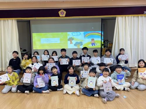 [½Åµ¿¾Æ¹æ¼Û Àü³²ÇÔÆò=À̽ŵ¿±âÀÚ] ±â»êÃʵîÇб³ Ä£±¸µéÀÌ 2Çб⠵¿¾È ÁøÇàÇÑ ±×¸²Ã¥ ÀÛ°¡ µÇ±â ÇÁ·ÎÁ§Æ®ÀÇ °á°ú ÀڽŸ¸ÀÇ ±×¸²Ã¥À» ¿Ï¼ºÇϰí Àü±³»ý ¾Õ¿¡¼­ ÀÚ½ÅÀÌ ¸¸µç ±×¸²Ã¥À» ¼Ò°³ÇÏ´Â ÃâÆÇ ±â³äÇà»ç¸¦ °¡Á³´Ù. À̹ø ±×¸²Ã¥ ÀÛ°¡ µÇ±â ÇÁ·ÎÁ§Æ®´Â [¿À ¸¶ÀÌ °«¡¦