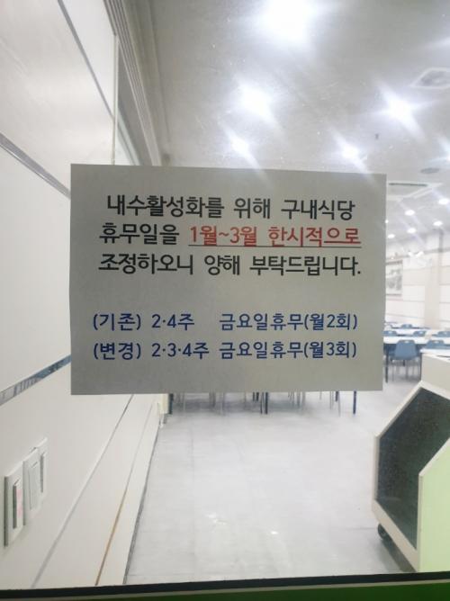 [½Åµ¿¾Æ¹æ¼Û °æ³²ÇÔ¾È=À̽ŵ¿±âÀÚ] ÇԾȱºÀº ´ëÅë·É źÇÙÁ¤±¹À¸·Î ÀÎÇÑ ¹Î»ý ºÒ¾ÈÀ» ÇØ¼ÒÇϰí ħüÇÑ Áö¿ª°æÁ¦¸¦ ȸº¹Çϱâ À§ÇØ ±¸³»½Ä´ç ÈÞ¹«¸¦ 1¿ùºÎÅÍ 3¿ù±îÁö ±âÁ¸ ¿ù 2ȸ(µÑ°‧³ÝÀç ±Ý¿äÀÏ)¿¡¼­ ¿ù 3ȸ(µÑ°‧¼Â°‧³Ý° ±Ý¿äÀÏ)·Î È®´ëÇÑ´Ù. ¡¦