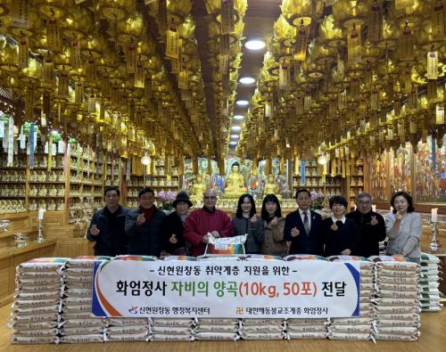 [½Åµ¿¾Æ¹æ¼Û = À±¹Î½Ä±âÀÚ] »ç´Ü¹ýÀÎ ´ëÇÑÇØµ¿ºÒ±³Á¶°èÁ¾ È­¾öÁ¤»ç(ÁÖÁö º¸±¤½º´Ô)´Â Áö³­ 13ÀÏ ½ÅÇö¿øÃ¢µ¿ÀÇ °ü³» Ãë¾à°èÃþÀ» À§ÇÑ ÀÚºñÀÇ ¾ç°î 50Æ÷(500kg)¸¦ ½ÅÇö¿øÃ¢µ¿ ÇàÁ¤º¹Áö¼¾ÅÍ(µ¿Àå ±èÀç±Ô)¿¡ Àü´ÞÇß´Ù. È­¾öÁ¤»ç´Â º¸±¤ ÁÖÁö½º´Ô°ú ½ÅµµµéÀÌ ºÎóÀÇ¡¦