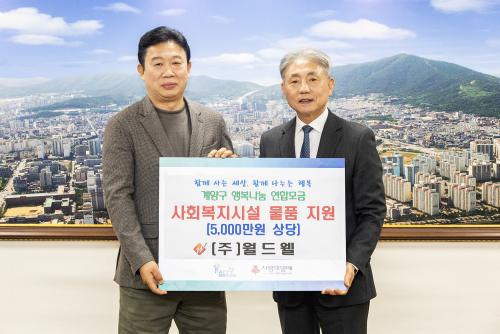 [½Åµ¿¾Æ¹æ¼Û = À±¹Î½Ä±âÀÚ] ÀÎõ±¤¿ª½Ã °è¾ç±¸(±¸Ã»Àå À±È¯)´Â Áö³­ 14ÀÏ ¼­¿î»ê¾÷´ÜÁö ³»¿¡ À§Ä¡ÇÑ (ÁÖ)¿ùµåÀ£ÀÌ À»»ç³â ¼³ ¸íÀýÀ» ¸Â¾Æ Áö¿ª ³» »çȸº¹Áö½Ã¼³ Áö¿øÀ» À§ÇÑ 5õ¸¸ »ó´çÀÇ ÈÄ¿ø¹°Ç°À» ±âŹÇß´Ù°í ¹àÇû´Ù. 1991³âºÎÅÍ SCR ¿ëÁ¢±â Á¦Á¶¸¦ ½ÃÀÛÀ¸·Î ´Ù¡¦