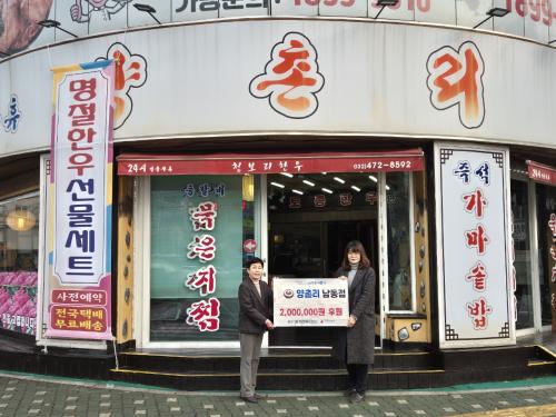 [½Åµ¿¾Æ¹æ¼Û = À±¹Î½Ä±âÀÚ] ÀÎõ½Ã ³²µ¿±¸ ¸¸¼ö1µ¿ ÇàÁ¤º¹Áö¼¾ÅÍ´Â ¢ßÁ¤Á¤´ç´ç(´ëÇ¥ ÀÌÁ¾Àº)À¸·ÎºÎÅÍ ÀÌ¿ô»ç¶û ÈÄ¿ø±Ý 200¸¸ ¿øÀ» Àü´Þ¹Þ¾Ò´Ù°í 15ÀÏ ¹àÇû´Ù. ÀÌÁ¾Àº ´ëÇ¥´Â ¡°Ãß¿î °Ü¿ï ¼Ò¿ÜµÈ ÀÌ¿ôµé¿¡°Ô µû¶æÇÑ ¸¶À½À» Àü´ÞÇϰíÀÚ ±âºÎÇÏ°Ô µÇ¾úÀ¸¸ç ¾ÕÀ¸·Îµµ¡¦