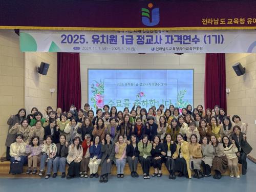 [½Åµ¿¾Æ¹æ¼Û Àü³²=À̽ŵ¿±âÀÚ] Àü¶ó³²µµ±³À°Ã»À¯¾Æ±³À°ÁøÈï¿ø¿¡¼­´Â 1¿ù 20ÀÏ(¿ù) Àü³² °ø¡¤»ç¸³À¯Ä¡¿ø ±³»ç 75¸íÀ» ´ë»óÀ¸·Î ½Ç½ÃÇÑ 2025. À¯Ä¡¿ø 1±Þ Á¤±³»ç ÀÚ°Ý¿¬¼ö(1±â)¸¦ ¸¶¹«¸®ÇÏ´Â ¼ö·á½ÄÀ» °¡Á³´Ù. º» ¿¬¼ö´Â 2024³â 11¿ù 1ÀÏ »çÀü¿¬¼ö¸¦ ½ÃÀÛÀ¸·Î ÃÑ 10¡¦