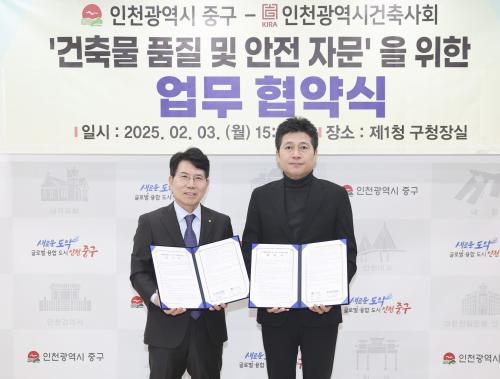[½Åµ¿¾Æ¹æ¼Û ÀÎõ= À±¹Î½Ä±âÀÚ] ÀÎõ½Ã Áß±¸´Â Áö¿ª °ÇÃ๰ÀÇ Ç°Áú Çâ»ó°ú ºÎ½Ç½Ã°ø ¹æÁö¸¦ À§ÇØ ÀÎõ±¤¿ª½Ã °ÇÃà»çȸ¿Í ¼ÕÀ» ¸ÂÀâ¾Ò´Ù°í 4ÀÏ ¹àÇû´Ù. À̸¦ À§ÇØ ±èÁ¤Çå ÀÎõ Áß±¸Ã»Àå°ú ±è¿µÃ¶ ÀÎõ°ÇÃà»çȸ ȸÀåÀº Áö³­ 3ÀÏ ¿ÀÈÄ Áß±¸Ã» ±¸Ã»Àå½Ç¿¡¼­ ÀÌ °°Àº ¡¦