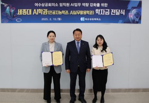 [½Åµ¿¾Æ¹æ¼ÛÀü³²¿©¼ö=±è±â³² ±âÀÚ] ¿©¼ö»ó°øÈ¸ÀÇ¼Ò Çѹ®¼± ȸÀåÀÌ ÀΰøÁö´É(AI) ½Ã´ë¸¦ ´ëºñÇÏ¿© AI °ü·Ã Çаú¿¡ ÁøÇÐÇÏ´Â Á÷¿øµé¿¡°Ô µî·Ï±Ý ¹× Á¦¹Ý ºñ¿ëÀ» Áö¿øÇÏ´Â ÇÐÀÚ±ÝÀ» °³ÀÎ »çÀç·Î Ã⿬ÇÏ¿© Àü´ÞÇß´Ù. ÀÌ´Â Á÷¿øµéÀÇ ¿ª·® °­È­¸¦ ÅëÇÑ ±â¾÷ °æÀï·Â È®º¸¿Í¡¦