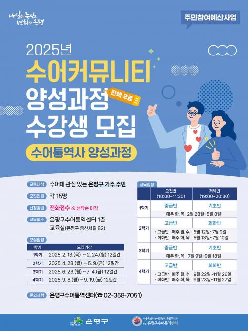 [½Åµ¿¾Æ¹æ¼Û ÀºÆò±¸=À̽ŵ¿±âÀÚ] ÀºÆò±¸´Â ¿À´Â 13ÀϺÎÅÍ 24ÀϱîÁö ÁÖ¹ÎÂü¿©¿¹»ê»ç¾÷À¸·Î ¼±Á¤µÈ ¡®¼ö¾îÄ¿¹Â´ÏƼ ¾ç¼º°úÁ¤¡¯ 1Çб⠱âÃʹÝ, Áß±Þ¹Ý ¼ö°­»ýÀ» ¸ðÁýÇÑ´Ù°í ¹àÇû´Ù. Çѱ¹¼ö¾î´Â ´Ü¼øÇÑ ÀÇ»ç¼ÒÅë ¼ö´ÜÀÌ ¾Æ´Ï¶ó ³óÀεéÀÇ Á¤Ã¼¼º°ú ¹®È­¸¦ ´ã°í ÀÖ´Â °íÀ¯ÇÑ¡¦