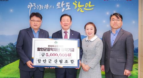 [½Åµ¿¾Æ¹æ¼Û °æ³²ÇÔ¾È=À̽ŵ¿±âÀÚ] ÇԾȱºÀåÇÐÀç´ÜÀº Áö³­ 5ÀÏ ÇԾȱº»ê¸²Á¶ÇÕ(Á¶ÇÕÀå ¾È»óÁÖ)¿¡¼­ ÀåÇбâ±Ý 500¸¸ ¿øÀ» ±âŹÇß´Ù°í ¹àÇû´Ù. À̳¯ ±âŹ½Ä¿¡´Â ¾È»óÁÖ Á¶ÇÕÀå°ú ÀÌÁ¡±¸ »ó¹«, À̹̿µ »ó¹«°¡ Âü¼®ÇØ Áö¿ªÀÇ ±³À° ¹ßÀü°ú ÀÎÀç ¾ç¼ºÀ» À§ÇÑ ¶æÀ» ÀüÇϸ硦
