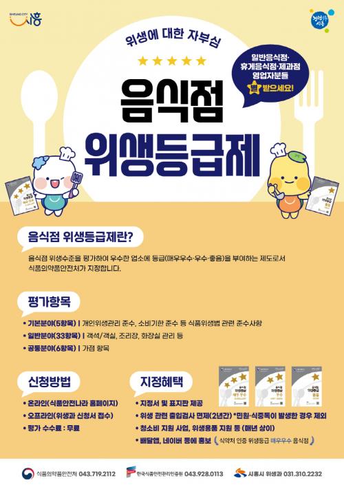 [½Åµ¿¾Æ¹æ¼Û ½ÃÈï½Ã=À̽ŵ¿±âÀÚ] ½ÃÈï½Ã´Â ¼ÒºñÀÚÀÇ ¼±ÅñÇÀ» º¸ÀåÇÏ°í ¾ÈÀüÇÏ°í °Ç°­ÇÑ ½Ä»ýȰ ¹®È­ Á¤ÂøÀ» À§ÇØ ¡®À½½ÄÁ¡ À§»ý µî±ÞÁ¦¡¯ ÁöÁ¤¾÷¼Ò¸¦ ¿ÃÇØ ¸»±îÁö »ó½Ã ¸ðÁýÇÑ´Ù. °ü³» ½ÄǰÁ¢°´¾÷¼Ò(ÀϹݡ¤ÈÞ°ÔÀ½½ÄÁ¡¡¤Á¦°úÁ¡)¸¦ ´ë»óÀ¸·Î ÁøÇàµÇ´Â 'À½½ÄÁ¡ À§»ý µî¡¦
