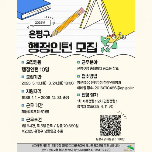 [½Åµ¿¾Æ¹æ¼Û ÀºÆò±¸=À̽ŵ¿±âÀÚ] ÀºÆò±¸´Â °ü³» ¹ÌÃë¾÷ û³âÀ» ´ë»óÀ¸·Î ¡®ÇàÁ¤ ÀÎÅÏ¡¯ Âü¿©ÀÚ 10¸íÀ» ¿À´Â 24ÀϱîÁö ¸ðÁýÇÑ´Ù°í ¹àÇû´Ù. ±¸´Â °øÁ÷¿¡ °ü½É ÀÖ´Â Ãë¾÷Áغñ»ý¿¡°Ô °ø°ø±â°üÀÇ ½Ç¹«°æÇèÀ» Á¦°øÇØ Áø·Î Ž»öÀ» µ½°í Ãë¾÷¿ª·®À» °­È­ÇϰíÀÚ, û³âÀÇ ´Ù¾çÇÑ¡¦