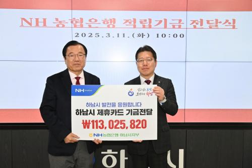 [½Åµ¿¾Æ¹æ¼Û Çϳ²½Ã=À̽ŵ¿±âÀÚ] NH³óÇùÀºÇà Çϳ²½ÃÁöºÎ´Â 11ÀÏ Çϳ²½Ã¿ÍÀÇ Çù¾à¿¡ ÀÇÇØ Á¦ÈÞÄ«µå ÀÌ¿ëÀ¸·Î ¹ß»ýÇÑ Àû¸³±â±Ý 113,025,820¿ø Àü´Þ½ÄÀ» °¡Á³´Ù. À̳¯ Àü´ÞµÈ Àû¸³±â±ÝÀº Çϳ²½Ã°¡ 2024³âµµ¿¡ »ç¿ëÇÑ ¹ýÀÎÄ«µå¿Í »çȸ´Üü º¸Á¶±ÝÄ«µå, °ø¹«¿ø º¹ÁöÄ«µå ¡¦