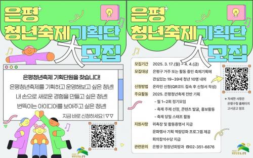 [½Åµ¿¾Æ¹æ¼Û ÀºÆò±¸=À̽ŵ¿±âÀÚ] ÀºÆò±¸´Â ¿À´Â 9¿ù °³ÃÖ ¿¹Á¤ÀÎ Á¦3ȸ ÀºÆòû³âÃàÁ¦¸¦ Á÷Á¢ ±âȹÇÏ°í ¿î¿µÇÒ ¡®ÀºÆòû³âÃàÁ¦±âȹ´Ü¡¯À» ³»´Þ 4ÀϱîÁö ¸ðÁýÇÑ´Ù°í ¹àÇû´Ù. ±¸´Â Áö³­ÇØ ÀºÆòû³âÃàÁ¦À§¿øÈ¸ û³âµéÀÇ ÀǰßÀ» ¹Ý¿µÇØ ¡®2024³â ÀºÆòû³âÆä½ºÆ¼¹ú¡¯À» ¼º°ø¡¦