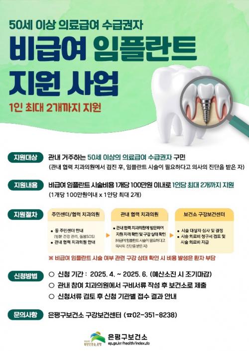 [½Åµ¿¾Æ¹æ¼Û ÀºÆò±¸=À̽ŵ¿±âÀÚ] ÀºÆò±¸´Â 50¼¼ ÀÌ»ó ÀÇ·á±Þ¿© ¼ö±Þ±ÇÀÚ¸¦ ´ë»óÀ¸·Î ÃÖ´ë 2°³±îÁö ºñ±Þ¿© ÀÓÇöõÆ® ½Ã¼úºñ¸¦ Áö¿øÇÑ´Ù°í ¹àÇû´Ù. ¡®ºñ±Þ¿© ÀÓÇöõÆ® Áö¿ø»ç¾÷¡¯Àº °íÇâ »ç¶û ÁöÁ¤±âºÎ»ç¾÷ÀÇ ÀÏȯÀ¸·Î Àú¼ÒµæÃþÀÇ °æÁ¦Àû ºÎ´ãÀ» ³·Ãß°í ±¸°­ÀÇ ÀúÀÛ ±â¡¦