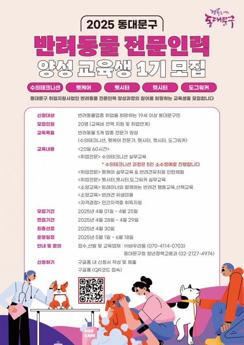 [½Åµ¿¾Æ¹æ¼Û µ¿´ë¹®±¸=À̽ŵ¿±âÀÚ] ¼­¿ï µ¿´ë¹®±¸´Â ¹Ý·Áµ¿¹°»ê¾÷ ºÐ¾ß¿¡ °ü½É ÀÖ´Â ±¸¹ÎµéÀ» À§ÇØ ¡®¹Ý·Áµ¿¹° Àü¹®Àη ¾ç¼º»ç¾÷¡¯ Âü¿©ÀÚ¸¦ 4¿ù 1ÀÏ(È­)ºÎÅÍ 25ÀÏ(±Ý)±îÁö ¸ðÁýÇÑ´Ù. À̹ø »ç¾÷Àº ¼öÀÇÅ×Å©´Ï¼Ç(µ¿¹°º¸°Ç»ç)°ú ÆêÄɾî(Æê½ÃÅÍ, Ĺ½ÃÅÍ, µµ±×¿öÄ¿) ºÐ¾ß¡¦