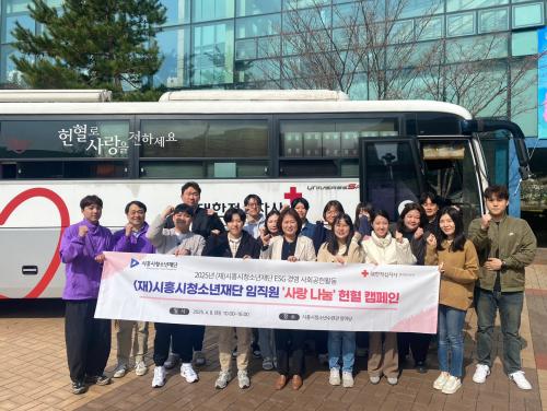 [½Åµ¿¾Æ¹æ¼Û ½ÃÈï½Ã=À̽ŵ¿±âÀÚ] (Àç)½ÃÈï½Ãû¼Ò³âÀç´ÜÀº Áö³­ 4¿ù 8ÀÏ Ã»¼Ò³â¼ö·Ã°ü ¾Õ¸¶´ç¿¡¼­ Àç´Ü ÀÓÁ÷¿øÀÌ Âü¿©ÇÏ´Â ¡®»ç¶û ³ª´®¡¯ ÇåÇ÷Ä·ÆäÀÎÀ» ÁøÇàÇß´Ù. À̹ø Ä·ÆäÀÎÀº (Àç)½ÃÈï½Ãû¼Ò³âÀç´Ü°ú ¡®´ëÇÑÀû½ÊÀÚ»ç ÀÎõÇ÷¾×¿ø¡¯ÀÌ Çù·ÂÇØ ÁøÇàµÆÀ¸¸ç ÇåÇ÷ÀÇ Á߿䡦