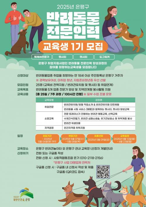 ÀºÆò±¸, ¹Ý·Áµ¿¹° Àü¹®Àη ¾ç¼º °úÁ¤ ¿î¿µ¡¦³»´Þ 6ÀϱîÁö ±³À°»ý ¸ðÁý