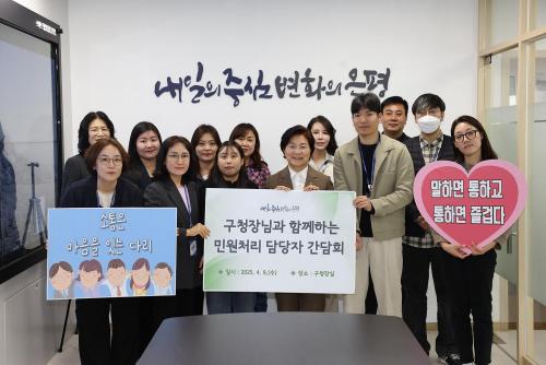 [½Åµ¿¾Æ¹æ¼Û ÀºÆò±¸=À̽ŵ¿±âÀÚ] ¼­¿ï ÀºÆò±¸´Â Áö³­ 9ÀÏ ¹Î¿ø 󸮸¦ ´ã´çÇÏ´Â °í¿¬Â÷ Á÷¿øµé°úÀÇ °£´ãȸ¸¦ ¿­¾î ¹Î¿ø Çö¾ÈÀ» ³íÀÇÇϰí ÇöÀåÀÇ ¸ñ¼Ò¸®¸¦ ûÃëÇÏ´Â ¼ÒÅëÀÇ ½Ã°£À» °¡Á³´Ù°í ¹àÇû´Ù. À̹ø °£´ãȸ´Â ±âÁ¸¿¡ Àú¿¬Â÷ ½Å±Ô Á÷¿øÀ» ´ë»óÀ¸·Î ÁøÇàÇß´ø °Í°ú ¡¦