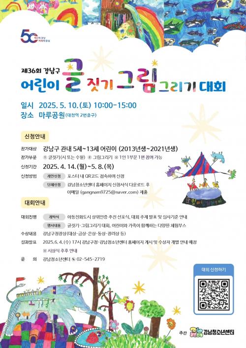 [½Åµ¿¾Æ¹æ¼Û °­³²±¸=À̽ŵ¿±âÀÚ] ²ÞÀÌ ¸ðÀÌ´Â µµ½Ã, ¹Ì·¡¸¦ ±×¸®´Â °­³²±¸°¡ ¿À´Â 5¿ù 10ÀÏ ÀÏ¿øµ¿ ¸¶·ç°ø¿ø¿¡¼­ ¡®Á¦36ȸ ¾î¸°ÀÌ ±ÛÁþ±â¡¤±×¸²±×¸®±â ´ëȸ¡¯¸¦ °³ÃÖÇÑ´Ù. À̹ø ´ëȸ´Â Äڷγª19 ÀÌÈÄ ¿Â¶óÀÎ ¹æ½ÄÀ¸·Î ÁøÇàµÈ ±âÁ¸ ¿î¿µ ¹æ½Ä¿¡¼­ ¹þ¾î³ª, °¡Á·°ú ÁֹΡ¦