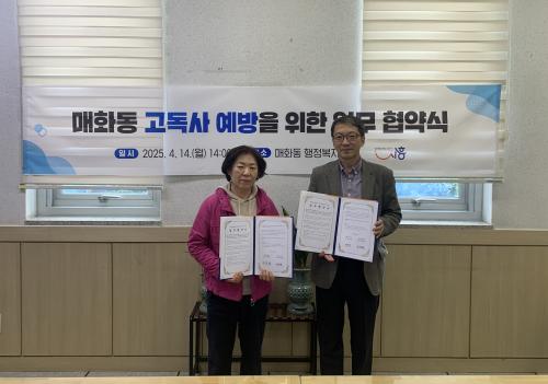 [½Åµ¿¾Æ¹æ¼Û ½ÃÈï½Ã=À̽ŵ¿±âÀÚ] ½ÃÈï½Ã ¸ÅÈ­µ¿ ÇàÁ¤º¹Áö¼¾ÅÍ´Â Áö³­ 4¿ù 14ÀÏ °íµ¶»ç ¿¹¹æ ¹× °ü¸®¸¦ À§ÇÑ ¹Î°ü Çù·ÂÀ» À§ÇØ ¸ÅÈ­µ¿¿¡ ÀÖ´Â ¿¡µ§½Äǰ°ú ¾÷¹«Çù¾àÀ» ü°áÇß´Ù. À̹ø Çù¾àÀº 1ÀÎ °¡±¸ ¹× ³ëÀÎ °¡±¸ÀÇ ºñÀ²ÀÌ ¸Å¿ì ³ôÀº ¸ÅÈ­µ¿ÀÇ °íµ¶»ç ¹®Á¦¸¦ ÇØ°áÇÏ¡¦