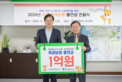 [½Åµ¿¾Æ¹æ¼Û ÀÎõ= À±¹Î½Ä±âÀÚ] ÀÎõ±¤¿ª½Ã ¼­±¸(±¸Ã»Àå °­¹ü¼®)´Â ÀڱݺÎÁ·À¸·Î °æ¿µ¿¡ ¾î·Á¿òÀ» °Þ°í ÀÖ´Â °ü³» ¼Ò±â¾÷°ú ¼Ò»ó°øÀÎÀ» À§ÇØ ÀÎõ½Å¿ëº¸ÁõÀç´Ü(ÀÌ»çÀå Àü¹«¼ö)¿¡ Ư·Êº¸Áõ Ã⿬±Ý 1¾ï ¿øÀ» Àü´ÞÇß´Ù°í 15ÀÏ ¹àÇû´Ù. ¼Ò±â¾÷¡¤¼Ò»ó°øÀΠƯ·Êº¸ÁõÀº¡¦