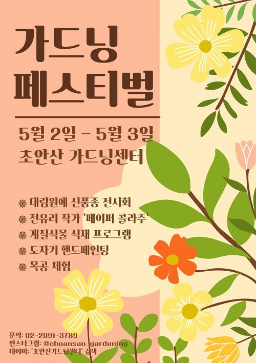 [½Åµ¿¾Æ¹æ¼Û µµºÀ±¸=À̽ŵ¿±âÀÚ] ¼­¿ï µµºÀ±¸ ÃʾȻ갡µå´×¼¾ÅÍ¿¡¼­ ¿À´Â 5¿ù 2Àϰú 3ÀÏ ¡®°¡µå´× Æä½ºÆ¼¹ú¡¯À» °³ÃÖÇÑ´Ù. °¡µå´× Æä½ºÆ¼¹úÀº ÃʾȻ갡µå´×¼¾ÅÍÀÇ °³°üÀ» ±â³äÇϱâ À§ÇØ Áö³­ÇغÎÅÍ °³°üÀÏ¿¡ ¸ÂÃç ¿­¸®°í ÀÖ´Ù. ÃʾȻ갡µå´×¼¾ÅÍ´Â 2023³â 5¿ù 2ÀÏ¡¦