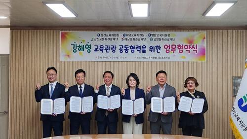 [½Åµ¿¾Æ¹æ¼Û Àü³²Çس²=À̽ŵ¿±âÀÚ] 2025³â 4¿ù 28ÀÏ(¿ù), ÇØ³²±³À°Áö¿øÃ»¿¡¼­ °­Áø, ÇØ³², ¿µ¾Ï ±³À°Áö¿øÃ» ¹× °ü±¤¹®È­Àç´Ü 6°³ ±â°üÀÇ ±â°üÀåÀÌ Âü¼®ÇÑ °¡¿îµ¥ ±³À°°ü±¤ °øµ¿Çù·ÂÀ» À§ÇÑ ¾÷¹«Çù¾àÀ» ü°áÇÏ¿´´Ù. À̹ø Çù¾àÀº Áö¸®ÀûÀ¸·Î °¡±î¿î °­Áø, ÇØ³², ¿µ¾ÏÀÌ ±³¡¦