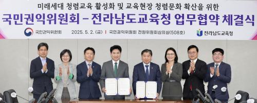 [½Åµ¿¾Æ¹æ¼Û Àü³²=À̽ŵ¿±âÀÚ] Àü¶ó³²µµ±³À°Ã»ÀÌ ¹Ì·¡¼¼´ëÀÇ Ã»·Å ÀǽÄÀ» ³ôÀ̰í, ±³À°ÇöÀå¿¡¼­ û·Å ¹®È­¸¦ È®»êÇϱâ À§ÇØ ±¹¹Î±ÇÀÍÀ§¿øÈ¸¿Í ¼ÕÀ» ¸ÂÀâ¾Ò´Ù. ¾ç ±â°üÀº 5¿ù 2ÀÏ ±¹¹Î±ÇÀÍÀ§ ¼¼Á¾Ã»»ç¿¡¼­¡®¹Ì·¡¼¼´ë û·Å±³À° ¹× û·Å ¹®È­ È®»êÀ» À§ÇÑ ¾÷¹«Çù¾à(MOU)¡¦