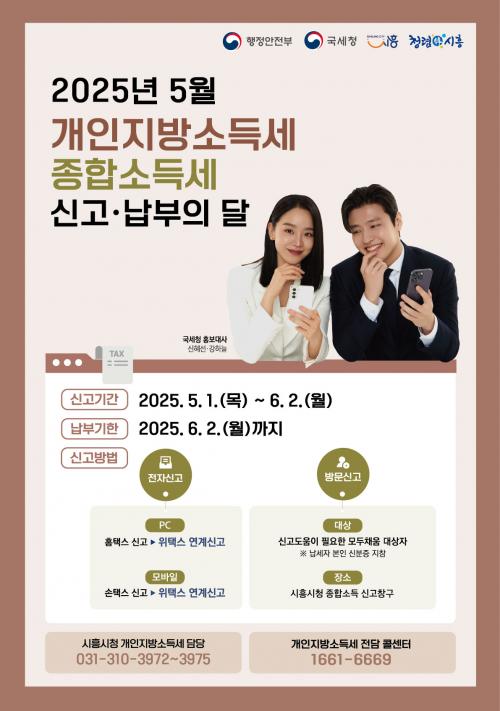 [½Åµ¿¾Æ¹æ¼Û ½ÃÈï½Ã=À̽ŵ¿±âÀÚ] ½ÃÈï½Ã´Â 5¿ù 1ÀϺÎÅÍ 6¿ù 2ÀϱîÁö °³ÀÎÁö¹æ¼Òµæ¼¼¤ýÁ¾Çռҵ漼 ½Å°í¤ý³³ºÎÀÇ ´ÞÀ» ¿î¿µÇÑ´Ù. 2024³â ±Í¼Ó Á¾Çռҵ漼 ³³¼¼Àǹ«ÀÚ´Â 6¿ù 2ÀϱîÁö °³ÀÎÁö¹æ¼Òµæ¼¼ ¹× Á¾Çռҵ漼¸¦ °¢°¢ ½Å°í¤ý³³ºÎÇØ¾ß ÇÑ´Ù. ÀüÀڽŰí´Â ȨÅýº¿¡¼­ Á¾¡¦