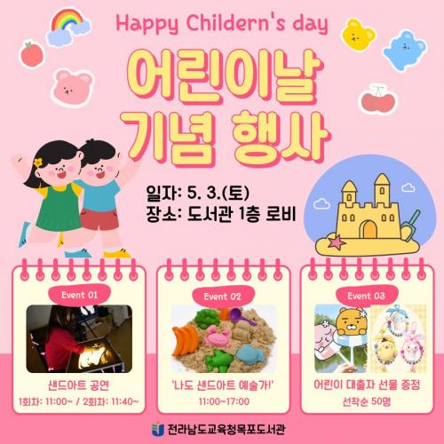 [½Åµ¿¾Æ¹æ¼Û Àü³²¸ñÆ÷=À̽ŵ¿±âÀÚ] Àü¶ó³²µµ±³À°Ã»¸ñÆ÷µµ¼­°üÀº Á¦103ȸ ¾î¸°À̳¯À» ±â³äÇÏ¿© ¿À´Â 5¿ù 3ÀÏ(Åä)¿¡ ¾î¸°ÀÌÀÚ·á½ÇÀ» ¹æ¹®ÇÏ´Â ¾î¸°ÀÌ¿Í °¡Á·µé¿¡°Ô Áñ°Å¿î Ãß¾ïÀ» ¸¸µé ¼ö ÀÖµµ·Ï Ưº°ÇÑ ¾î¸°À̳¯ Çà»ç¸¦ ¼±»çÇÒ ¿¹Á¤ÀÌ´Ù. À̹ø ¾î¸°À̳¯ ±â³ä Çà»ç·Î¡¦