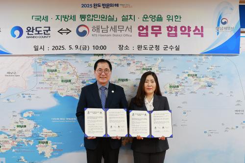 [½Åµ¿¾Æ¹æ¼Û ¿Ïµµ=À̼±Á¾ ±âÀÚ] ¿Ïµµ±º(±º¼ö ½Å¿ìö)°ú ÇØ³²¼¼¹«¼­(¼¼¹«¼­Àå ¹ÚÇöÁÖ)´Â Áö³­ 9ÀÏ ¿Ïµµ±ºÃ» ³» ±¹¼¼¡¤Áö¹æ¼¼ ÅëÇÕ ¹Î¿ø½ÇÀ» ¼³Ä¡¡¤¿î¿µÇϱâ·Î ¾÷¹« Çù¾àÀ» ü°áÇß´Ù. ÇöÀç ±¹¼¼´Â ÇØ³²¼¼¹«¼­ ¿Ïµµ¹Î¿ø½Ç, Áö¹æ¼¼´Â ¿Ïµµ±ºÃ»¿¡ ó¸®Çϰí ÀÖÀ¸¡¦