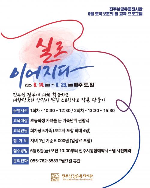 [½Åµ¿¾Æ¹æ¼Û °æ³²ÁøÁÖ=³²±Ã¿µ±â±âÀÚ] ÁøÁÖ³²°­À¯µîÀü½Ã°üÀº 6¿ù ±³À° ÇÁ·Î±×·¥ ¡®½Ç·Î À̾îÁö´Ù¡¯ Âü¿©ÀÚ¸¦ ¸ðÁýÇÑ´Ù. º» ÇÁ·Î±×·¥Àº È£±¹º¸ÈÆÀÇ ´ÞÀ» ¸ÂÀÌÇÏ¿© ¿ª»çÀû »ç½ÇÀ» ±â¹ÝÀ¸·Î ÇÑ ±³À° ÇÁ·Î±×·¥À¸·Î È£±¹º¸ÈÆÀÇ Àǹ̸¦ ¹è¿ì°í ÁøÁÖ¼º ÀüÅõ ¿ª»ç¿¡ ´ëÇÑ ¼ö¾÷¡¦