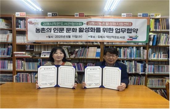 [½Åµ¿¾Æ¹æ¼Û °æ³²±èÇØ=³²±Ã¿µ±â±âÀÚ] ±èÇØ½Ã³óÃÌȰ¼ºÈ­Áö¿ø¼¾ÅÍ¿Í ±èÇØ½ÃÀÛÀºµµ¼­°üÇùÀÇȸ°¡ ³óÃÌÁö¿ªÀÇ Àι® ¹®È­ Ȱ¼ºÈ­¸¦ À§ÇÑ ¾÷¹«Çù¾à(MOU)À» ü°áÇß´Ù°í 12ÀÏ ¹àÇû´Ù. Çù¾à¿¡ µû¶ó ¾ç ÃøÀº ³óÃÌ È°¼ºÈ­ °ü·Ã µµ¼­ È«º¸ ¹× ºñÄ¡, µµ³ó±³·ù Ȱ¼ºÈ­ ÇÁ·Î±×·¥ ¿î¿µ¡¦