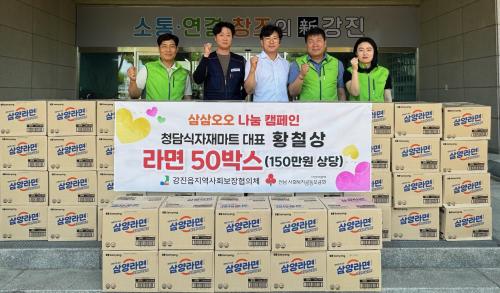 [½Åµ¿¾Æ¹æ¼Û Àü³²°­Áø=¹Ú±¤¿Á±âÀÚ] °­ÁøÀ¾Áö¿ª»çȸº¸ÀåÇùÀÇü°¡ ÁÖ°üÇÏ´Â ¡®»ï»ï¿À¿À ³ª´® Ä·ÆäÀΡ¯¿¡ Áö³­ 19ÀÏ È²Ã¶»ó û´ã½ÄÀÚÀ縶Ʈ ´ëÇ¥°¡ ¶ó¸é 50¹Ú½º(150¸¸ ¿ø »ó´ç)¸¦ ±âºÎÇß´Ù. Ȳö»ó ´ëÇ¥´Â ¡°¹°°¡°¡ ¸¹ÀÌ ¿Ã¶ó ³¢´ÏÁ¶Â÷ °ÆÁ¤ÇϽô ÀÌ¿ôµéÀÌ ¸¹´Ù´Â À̾ߡ¦
