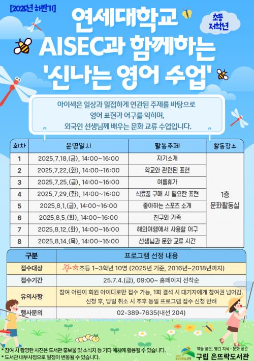 ÀºÆò±¸ Àº¶ß¶ôµµ¼­°ü, ¿¬¼¼´ëÇб³ »çȸȰµ¿ µ¿¾Æ¸® ¾ÆÀ̼½(AIESEC)°ú ÇÔ²²ÇÏ´Â ¡®½Å³ª´Â ¿µ¾î ¼ö¾÷¡¯ ¿î¿µ
