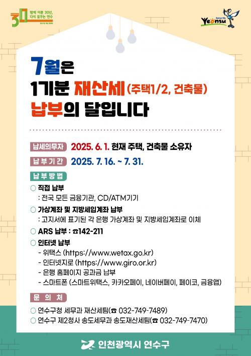[½Åµ¿¾Æ¹æ¼Û ÀÎõ= À±¹Î½Ä ±âÀÚ]¿¬¼ö±¸(±¸Ã»Àå ÀÌÀçÈ£)´Â 2025³âµµ 7¿ù 1±âºÐ Àç»ê¼¼ 22¸¸¿© °Ç¿¡ 882¾ï¿© ¿øÀ» ºÎ°úÇß´Ù. Àç»ê¼¼´Â º¸À¯±â°£°ú °ü°è¾øÀÌ ¸Å³â °ú¼¼±âÁØÀÏÀÎ 6¿ù 1ÀÏ ÇöÀç Àç»ê ¼ÒÀ¯ÀÚ¿¡°Ô ºÎ°úµÇ¸ç, 7¿ù¿¡´Â ÁÖÅÃ(1/2), °ÇÃ๰, ¼±¹Ú, Ç×°ø±â¿¡ 9¿ù¡¦