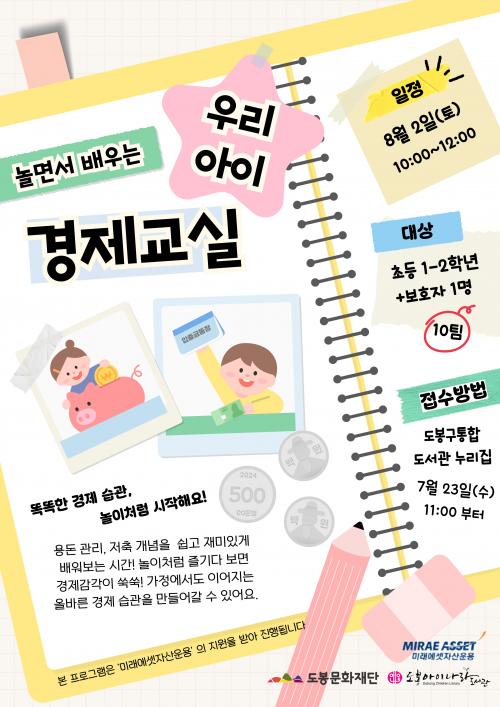 [½Åµ¿¾Æ¹æ¼Û µµºÀ±¸=À̽ŵ¿±âÀÚ] ¼­¿ï µµºÀ±¸ µµºÀ¾ÆÀ̳ª¶óµµ¼­°üÀÌ ¿À´Â 8¿ù 2ÀÏ Ãʵî ÀúÇг⠾ÀÌ¿Í º¸È£ÀÚ¸¦ ´ë»óÀ¸·Î ¡®³î¸é¼­ ¹è¿ì´Â ¿ì¸® ¾ÆÀÌ °æÁ¦±³½Ç¡¯ ÇÁ·Î±×·¥À» ¿î¿µÇÑ´Ù. À̹ø ÇÁ·Î±×·¥Àº ¾î¸°ÀÌ ¸ÂÃã ±ÝÀ¶±³À° °úÁ¤À¸·Î, ¡®¹Ì·¡¿¡¼ÂÀÚ»ê¿î¿ë¡¯ÀÌ »çȸ¡¦