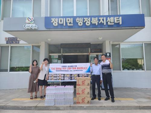 [½Åµ¿¾Æ¹æ¼Û=ÀÌÀçö±âÀÚ] ±â·ÏÀûÀÎ Æø¿ì·Î Å« ÇÇÇØ°¡ ÀÖ´Â Á¤¹Ì¸é¿¡ °íÇâÀ» ÀØÁö ¾ÊÀº µû¶æÇÑ ¼Õ±æÀÌ À̾îÁö°í ÀÖ´Ù. Á¤¹Ì¸é(¸éÀå ¹Ú¸í¼ö)Àº Áö³­ 26ÀÏ ¿ÀÈÄ, ÀçÀÎÁ¤¹Ì¸é¹Îȸ(¿ÜÀå ±è¸íÈ£)°¡ Á¤¹Ì¸éÀ» ã¾Æ ¼öÇØ·Î ¾î·Á¿òÀ» °Þ´Â ÀÌ¿ôµéÀ» À§ÇÑ ±¸È£ ¹°Ç°À» Àü´ÞÇß´Ù¡¦