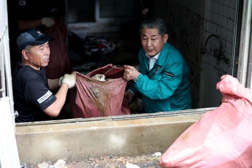 [½Åµ¿¾Æ¹æ¼Û ÀÎõ= À±¹Î½Ä ±âÀÚ]ÀÎõ±¤¿ª½ÃÀÇȸ Á¤ÇرÇ(±¹・¿¬¼ö1) ÀÇÀåÀº 14ÀÏ, ±â·ÏÀûÀÎ Æø¿ì·Î ÇÇÇØ¸¦ ÀÔÀº ÀÎõ ¼­±¸ ¼öÇØº¹±¸ ÇöÀåÀ» ã¾Æ ÇÇÇØ »óȲÀ» Á¡°ËÇÏ°í °ü°èÀÚµéÀ» °Ý·ÁÇß´Ù. À̹ø ÇöÀå ¹æ¹®¿¡´Â ±èÀ¯°ï(±¹¡¤¼­±¸3) »ê¾÷°æÁ¦À§¿øÀå°ú ÀÌ¿ëâ(±¹¡¤¼­¡¦