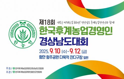 Á¦18ȸ Çѱ¹Èİè³ó¾÷°æ¿µÀÎ °æ»ó³²µµ´ëȸ 9¿ù 10ÀϺÎÅÍ 3Àϰ£, ÇԾȱº¿¡¼­ °³ÃÖ