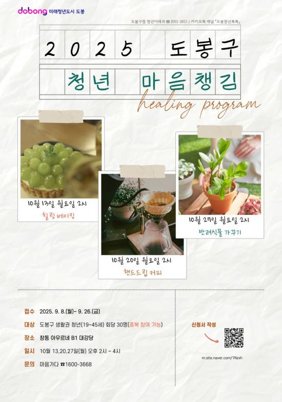 [½Åµ¿¾Æ¹æ¼Û µµºÀ±¸=À̽ŵ¿±âÀÚ] ¼­¿ï µµºÀ±¸°¡ µµºÀ±¸ »ýȰ±Ç(°ÅÁÖ¡¤ÀçÁ÷¡¤ÀçÇÐ) 19~45¼¼ û³âÀÇ Á¤¼­Àû ¾ÈÁ¤À» À§ÇØ ¡®2025³â û³â ¸¶À½Ã¬±è ÇÁ·Î±×·¥¡¯À» ¿î¿µÇÑ´Ù. ±¸´Â Áö³­ÇØ ÇÁ·Î±×·¥ ¿î¿µ °á°ú¿Í Âü¿©ÀÚ ¼³¹®Á¶»ç¸¦ ¹ÙÅÁÀ¸·Î û³âµéÀÌ ¼±È£ÇÏ´Â 3°¡Áö ÇÁ·Î±×¡¦