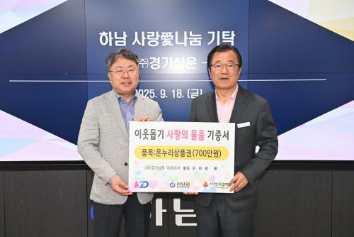 [½Åµ¿¾Æ¹æ¼Û Çϳ²½Ã=À̽ŵ¿±âÀÚ] Áö³­ 19ÀÏ, ¢ß°æ±â»ó¿îÀº Çϳ² »ç¶ûäñ³ª´®À¸·Î ¼ºÇ°(¿Â´©¸®»óǰ±Ç 700¸¸¿ø)À» ±âŹÇÏ¸ç ±âŹ½ÄÀ» °¡Á³´Ù. À̳¯ ±âŹ½Ä¿¡´Â ÀÌÇöÀç Çϳ²½ÃÀåÀ» ºñ·ÔÇÏ¿© ¢ß°æ±â»ó¿î Çã´öÇà »ó¹«ÀÌ»ç µî 6¸íÀÌ Âü¼®ÇÏ¿© ÀÚ¸®¸¦ ºû³Â´Ù. ¢ß°æ±â»ó¡¦