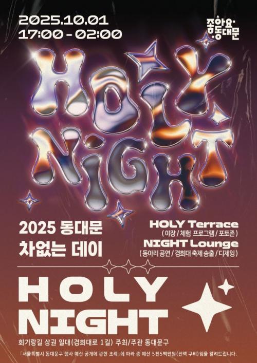 [½Åµ¿¾Æ¹æ¼Û µ¿´ë¹®±¸=À̽ŵ¿±âÀÚ] ¼­¿ï µ¿´ë¹®±¸´Â ¿À´Â 10¿ù 1ÀÏ ¿ÀÈÄ 5½ÃºÎÅÍ ´ÙÀ½³¯ ¿ÀÀü 2½Ã±îÁö ȸ±â¿ª Àα٠ȸ±â¶û±æ(°æÈñ´ë·Î1±æ ¹× °æÈñ´ë·Î1°¡±æ ÀÏ´ë)¿¡¼­ ¡®2025 Â÷¾ø´Â µ¥ÀÌ-HOLY NIGHT¡¯ Çà»ç¸¦ °³ÃÖÇÑ´Ù°í ¹àÇû´Ù. ƯÈ÷ À̹ø Çà»ç´Â ÀÚÄ¡±¸ ÃÖÃÊ·Î ´ë¡¦