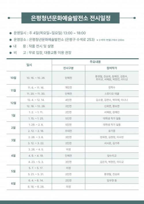 [½Åµ¿¾Æ¹æ¼Û ÀºÆò±¸=À̽ŵ¿±âÀÚ] ¼­¿ï ÀºÆò±¸´Â ÀºÆòû³â¹®È­¿¹¼ú¹ßÀü¼Ò¿¡¼­ ¿ÃÇØ °ø¸ð ¼±Á¤µÈ ¡®±â¿ò ¹®È­¿¹¼úÇùµ¿Á¶ÇÕ¡¯ÀÇ Ã»³â ÀÛ°¡ ÀÛǰ Àü½Ã¸¦ ÁøÇàÇϰí ÀÖ´Ù°í ¹àÇû´Ù. ±¸´Â ¸Å³â °ø¸ð¸¦ ÅëÇØ ÀºÆòû³â¹®È­¿¹¼ú¹ßÀü¼Ò¸¦ Áö¿ª ¹®È­¿¹¼ú´ÜüÀÇ È°µ¿°ø°£À¸·Î Á¦°ø¡¦